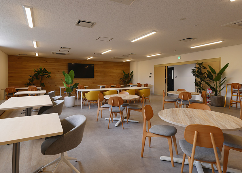 ゆっくりと休めるオシャレな休憩室など、従業員の働きやすさを考えた設計がされています。